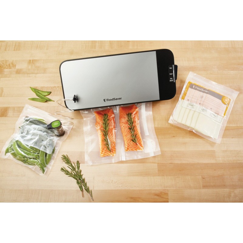 Pakowanie próżniowe jest jednym z najskuteczniejszych sposobów przechowywania żywności, a dzięki systemowi pakowania próżniowego VS2190x ze schowkiem na rolkę jest to również łatwe. Prezentowany system próżniowy o eleganckim i nowoczesnym wyglądzie zajmuje niewiele miejsca i jest bardzo wygodny w codziennym użytkowaniu. W zestawie 2 rolki folii do pakowania próżniowego FoodSaver FSR2802X.