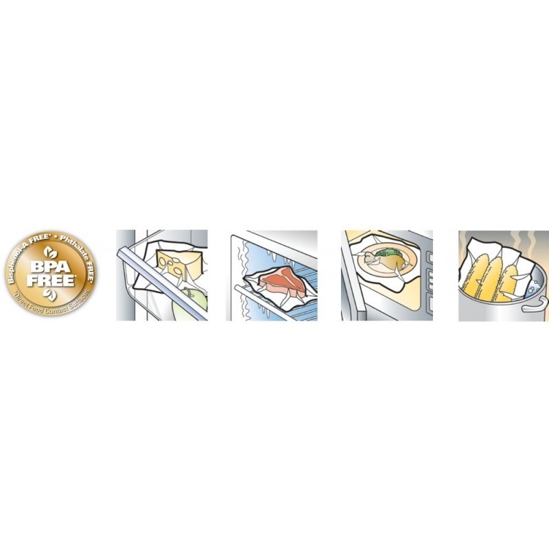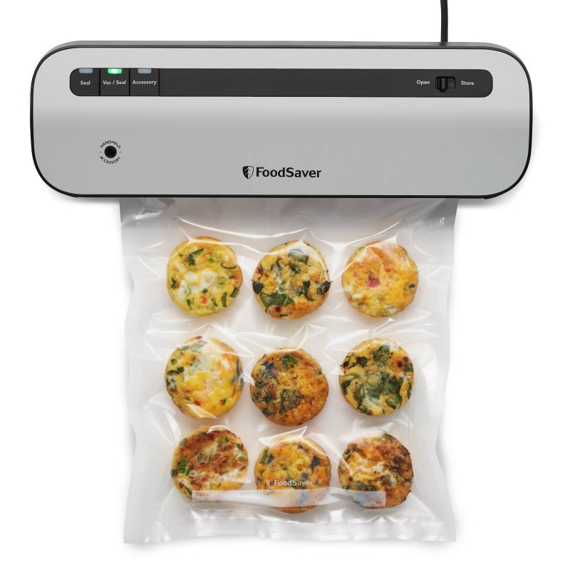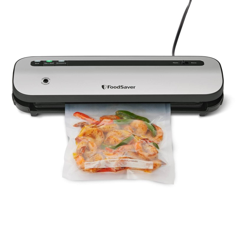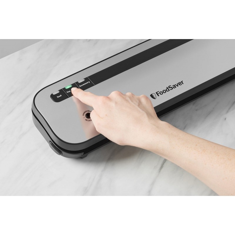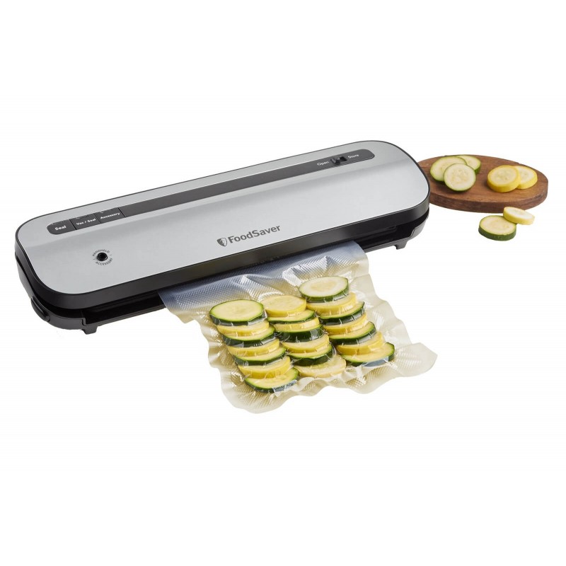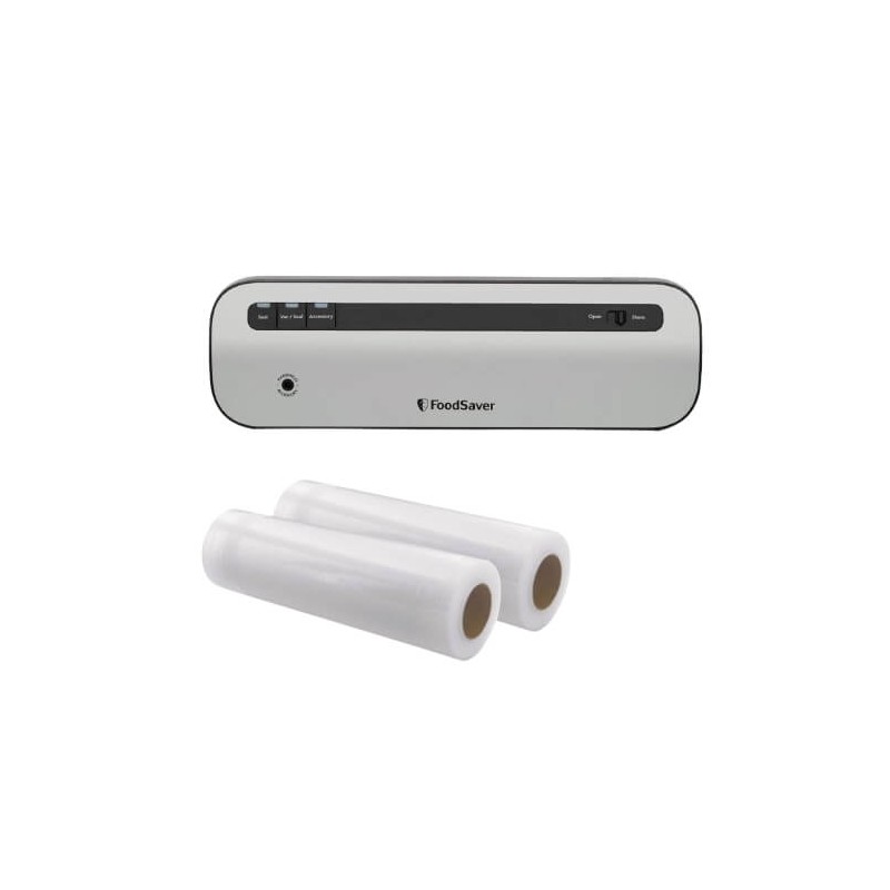 Ciesz się świeżą żywnością dzięki systemowi do pakowania próżniowego FoodSaver VS1290X, który utrzymuje świeżość żywności do 5x dłużej w porównaniu z tradycyjnymi metodami przechowywania. Kompaktowa, cicha i łatwa w użyciu zgrzewarka próżniowa pomoże zmniejszyć marnotrawstwo żywności. W zestawie 2 rolki folii do pakowania próżniowego FoodSaver FSR2802X.
